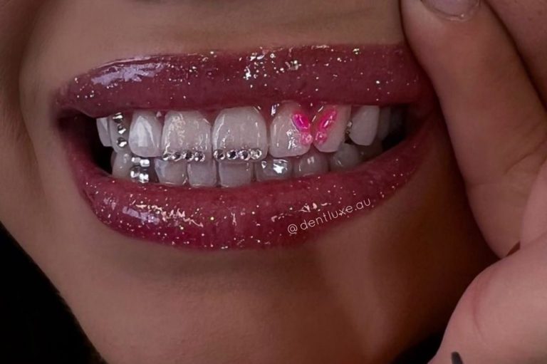 Zahnschmuck bezeichnet dekorative Elemente, die auf der Zahnoberfläche befestigt werden, um die Zähne zu verzieren.